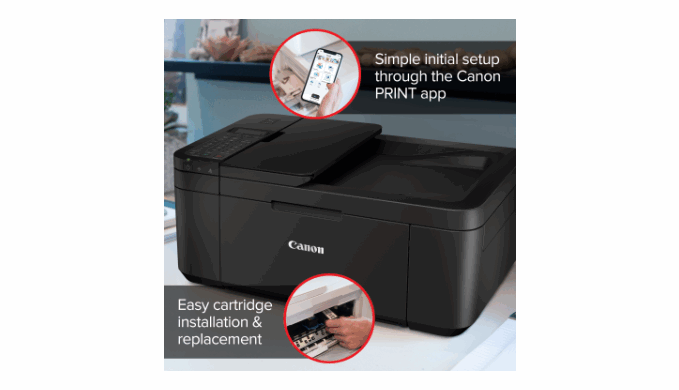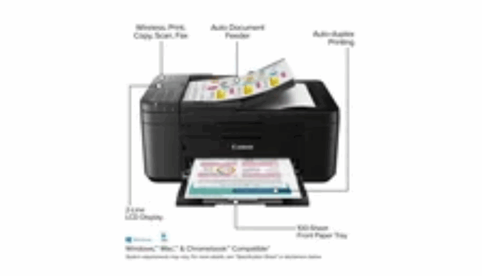CANON PIXMA TR4722 Wireless InkJet All-In-One Printer. Compact, Versatile, Easy-to-use For all your work or home printing needs, the PIXMA TR4722 Wireless All-in-One Printer has you covered. Enjoy simple setup through the Canon PRINT Inkjet/SELPHY App and an easy to install 2-Cartridge hybrid ink system and front loading 100-sheet paper tray. Big on performance, the PIXMA TR4722 is equipped with Auto 2-Sided Printing, an Auto Document Feeder for multi-page scanning, and built-in Fax functionality. With a variety of connectivity options, you’ll be able to do it all from your PC or mobile devices— plus, the PIXMA TR4722 is compatible with Canon apps for printing, scanning, creative projects and more. Simple, productive office and home printing in a compact size— that’s the PIXMA TR4722.