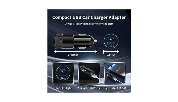 [Miniature Size, LED Light] With ultra-compact dimensions, this car charger is designed to fit in the smallest of spaces while providing exceptional charging capability. With the confirmed connection by LED Indicator Blue Light, you can make sure your digital devices are always charged