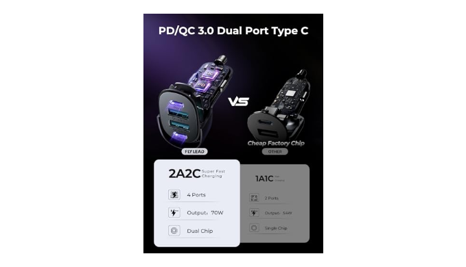 UL and FCC Certification: FLYLEAD car cigarette lighter fast charger has provided the advanced intelligent circuity safety system to prevent short-circuit, overheating, overcurrent, and overcharging. USB C car charger can automatically identifies any devices you plug in and distributes the optimal charging efficiency for you