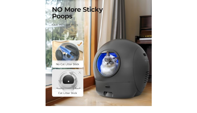 NO MORE STICKY POOPS: Our Cawypety automatic cat litter box applied the newest self-clean design but not the typical rotating filter. So the poops will not stick to the machine to become smelly inside anymore.