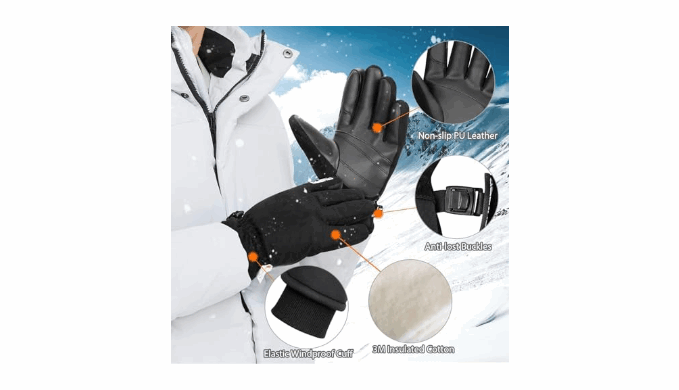 Waterproof: TPU waterproof layer is sewn into the insulated gloves in a special way. Waterproof winter gloves can keep your hands warm at all times even in light rain or snow; With Double Shirred Elastic Wrist, keep winter ski gloves closed around your hands and against melting snow and cold winds when you work or play sports at -30°F.