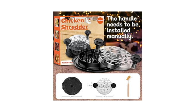 【Efficient and Comfortable Mincing】: The handle of the meat shredder is ergonomic and uses ultrasonic synthesis. The handle can rotate 360 degrees but is not easy to fall; the top cover and base are both made of five-pointed star spikes, which can shred the chicken more quickly.(Note: The installation handle needs to be pressed down hard! )