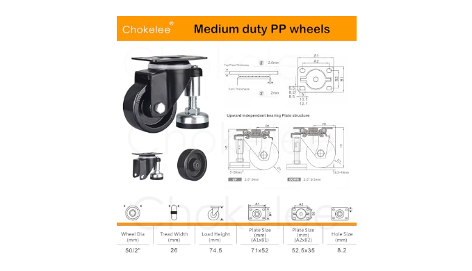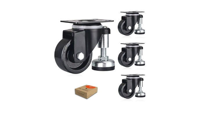 3.REINFORCED STEEL PLATE. Swivel plate of this leveling caster is specially designed to be thicker and stronger with our unique cold-rolled technology. When wheel rolling, the load capacity is 120 Lbs per caster and a total of 480 Lbs with set of 4.