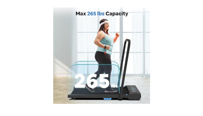 【High Weight Capacity】This walking pad treadmill has a weight capacity of 265 pounds, which means it\'s ideal for users of all sizes and fitness levels. You can rest assured that you\'ll have a safe and comfortable workout experience with us.