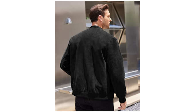 FABRIC ---Mens bomber jacket made from lightweight faux suede. Lightweight material allows you to wear without any burden while providing warmth and comfort.