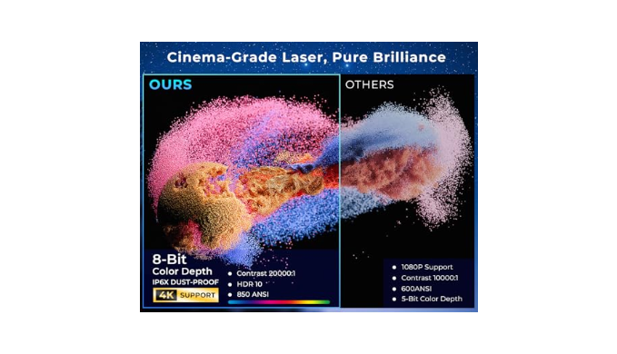 [Exceptional Contrast and Brightness]: The wireless TV home projector boasts an impressive 20,000:1 contrast ratio and 850 ANSI lumens for vivid colors and deep blacks, enhanced by HDR10 and 8-bit color depth.