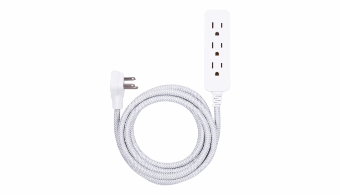 - Cordinate Designer Extension Cord, 3 Grounded Outlets, 10′ Cord and Low-Profile Plug, Gray: