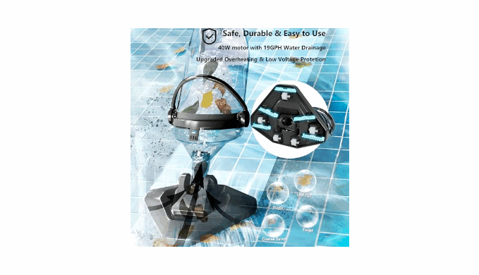 【Cordless & Not Heavy】Lightweight cordless pool vacuum gives you total freedom to move around without dealing with tangled cords, with 40W motor with 19 gallon/min flow rate to efficiently removes dirt, leaves, and debris, leaving your pool sparkling clean