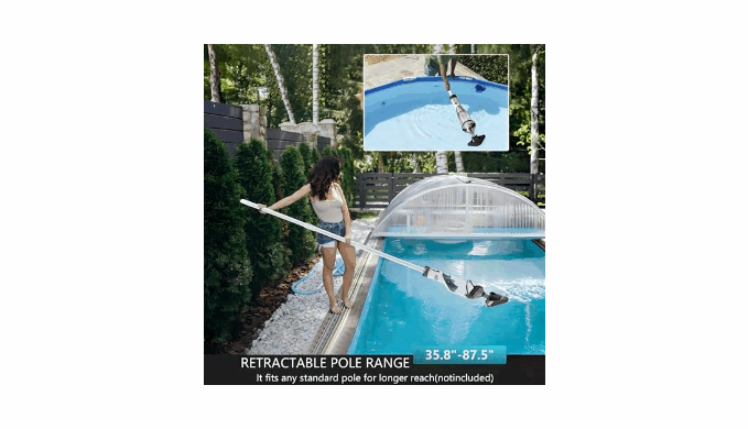 【60\" Extendable Pole】Cordless hot tub vacuum allows you to maneuver freely without worrying about tangled cords, with included telescopic (35.8-87.5 inches), makes it easy to reach every corner of the pool