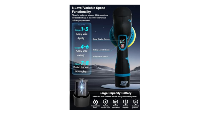 【Large Capacity with 2 Batteries and Battery Level Display】: The wireless polisher comes with 2 high-capacity 12V batteries, offering extended usage time and sustained performance. With infrequent interruptions for recharging, it ensures continuity and efficiency in work. The battery level display on the polisher allows you to monitor power consumption anytime, providing reliability and convenience.
