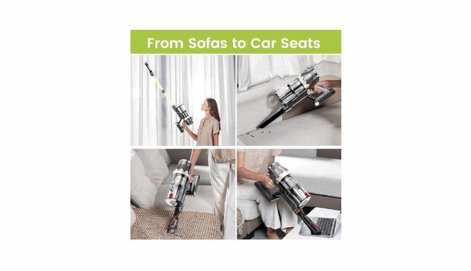 【Powerful Suction for Deep Cleaning】Experience unmatched cleaning performance with suction power. This cordless vacuum powered by a 550W high-performance brushless motor, effortlessly lifts dirt, dust, and debris from carpets, hardwood floors, and every surface in between, leaving your home spotless and fresh.