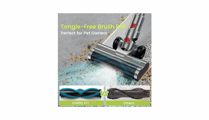 【Anti-Tangle Roller Brush】Say goodbye to frustrating hair wrap! The anti-tangle roller brush is designed to pick up pet hair, long strands, and debris without clogging, making cleaning faster and hassle-free.
