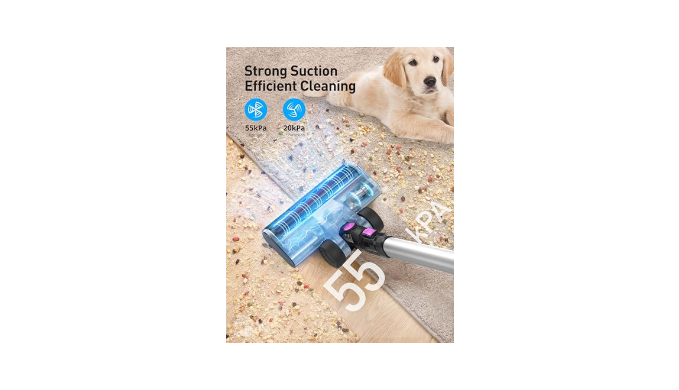 55 KPA DUAL-POWER SUCTION: Lightweight cordless vacuum with brushless motor delivers 55KPa MAX mode for deep carpet cleaning and 30KPa standard mode for hard floors. Anti-tangle V-shaped roller captures 99.8% pet hair, perfect for multi-pet households