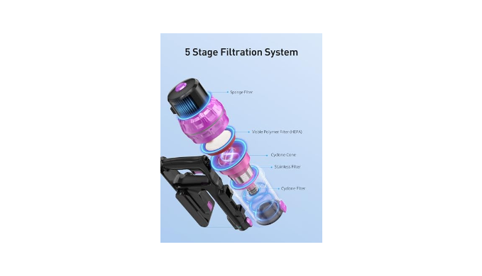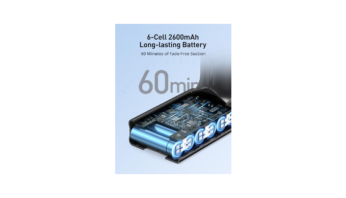 Up to 60 mins Runtime: A 2,600mAh 7-cell lithium battery pack ensuring a cleaning time of up to 60 minutes continuous cleaning. Only a single charge can provide a thorough deep cleaning of the entire house, without stopping to charge the battery during cleaning