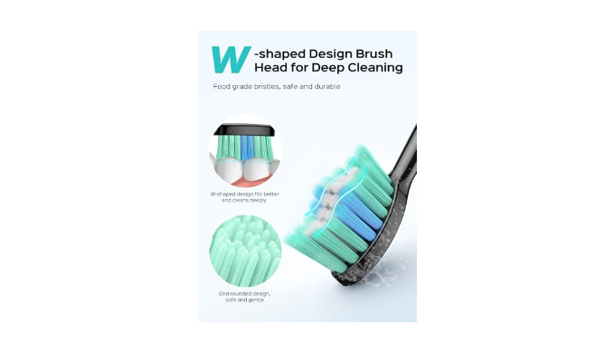 \"W\" Shaped Design Brush for Deep Cleaning: The brush of this electric travel toothbrush is made of food-grade, safe and durable bristles with moderate-soft hardness. The W-shaped design is in line with the shape of teeth, which can deeply clean the teeth gaps; the end rounded design is gentle and safe for gum. The electric toothbrush for adults and kids comes with 6 brush heads, lasting for 18 months. With blue color-fade reminder bristles, let you know when to replace the brush head