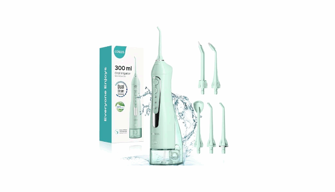 Note: a, Adapter is not included to avoid wasting resources, but you can charge it using any 5V adapter on hand. If needed, get from COSLUS. b, For first-time use, set to \'Soft\' mode and keep your mouth closed to let your gums gradually adapt to the water pressure. c, Packaging may vary (new or old), but the contents are exactly the same.