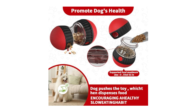 Slow Food Feeding Toys: This toy features two spherical containers of different sizes. When your lovely dog nudges or rolls the toy, food will fall out through small holes, adding fun to feeding. This method of small, frequent meals can effectively slow down your pet\\\'s eating speed, ensuring healthy feeding.