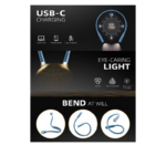 【FLEXIBLE ARM & RECHARGEABLE】 The high-quality silicone arm is bendable in 360 degrees, allowing for various shapes and easy adjustment of the light angle. It uses USB-C charging for convenience, and can be charged with adapters, laptops, and power banks. The built-in lithium battery takes about 1.5 hours to fully charge and can last up to 70 hours.