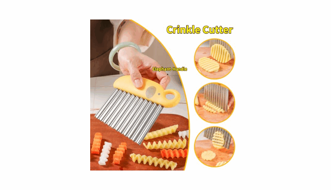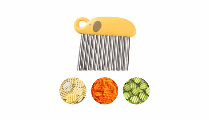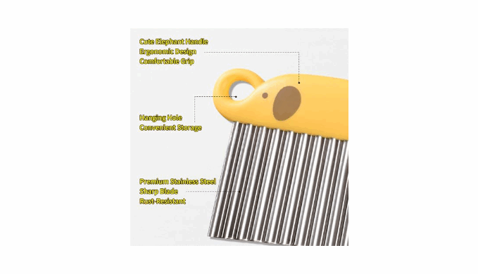 【Adorable & Ergonomic Elephant Handle】This crinkle cutter features an ergonomic elephant-shaped handle that fits the natural curve of your palm. It prevents slipping during use, eases hand strain, and offers a super comfortable grip—making slicing effortless and enjoyable. It’s the top pick for kids learning to cut safely!