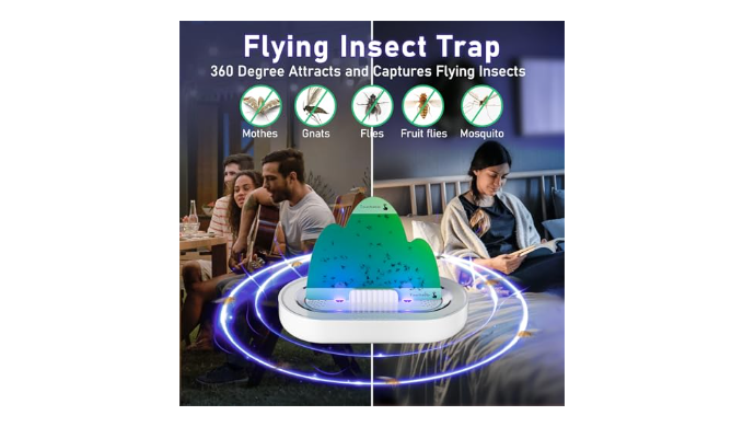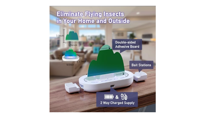 Dual Charging Modes: Equipped with a rechargeable battery, our flying insect trap can be easily moved outdoors, perfect for night fishing, camping, outdoor dining, patio parties, and picnics. Additionally, it can be charged via USB for convenient indoor use.