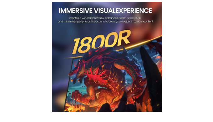1800R curvature : CRUA gaming monitor 1800R curvature design lets you see more content without excessive head movement.The stylish design of ultra-thin with three sides and a stable V-shaped base. A wide range of -5° to 15° tilt adjustment allows you to maximize your viewing comfort.