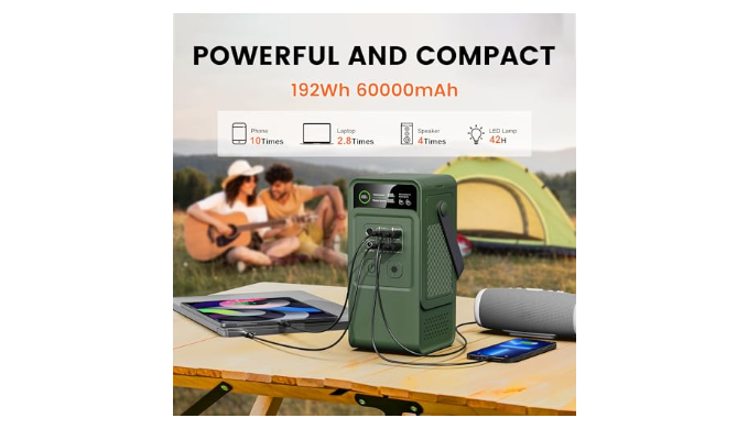 [Massive Power for All Your Devices]: With a robust 60,000mAh (192Wh) capacity, this power station charges your iPhone 14 up to 10 times, your MacBook Air up to 2.9 times, or powers a 3W LED light for over 42 hours. Includes a 60cm 140W USB-C to C charging cable.