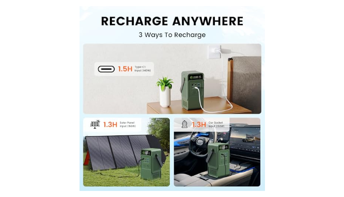 [Sustainable Solar Charging]: Supports 100W solar charging, ensuring reliable power wherever you are. Additionally, you can recharge to 90% in just 1.3 hours via the PD 3.1 USB-C port.
