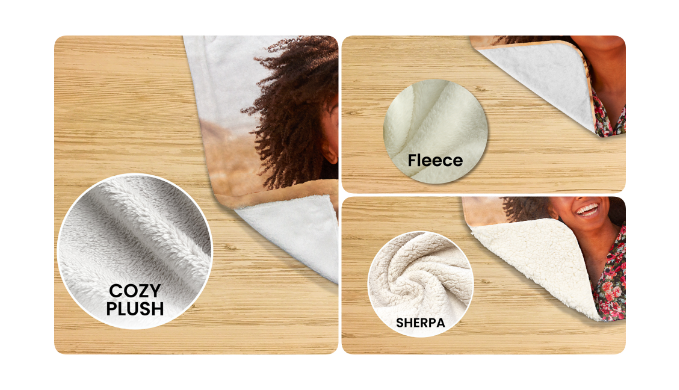 - Sherpa Fleece: Our fluffy sherpa fleece comes with a warm smooth front, with a cozy and super soft fleece backing.
