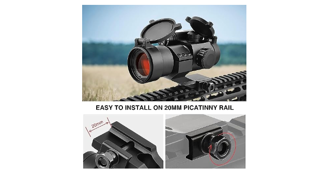 Easy to Use: Coming with an offset cantilever mount, red dot sight for picatinny rail is easy to install without tools; Precision windage and elevation adjustments holds zero well while remounting the dismounted sight.