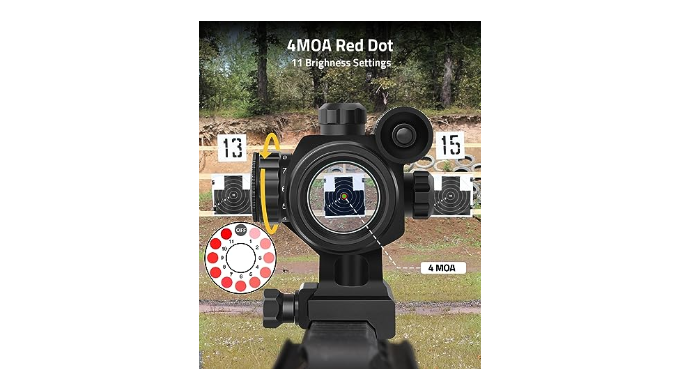 Easy to Use: Coming with an offset cantilever mount, red dot sight for picatinny rail is easy to install without tools; Precision windage and elevation adjustments holds zero well while remounting the dismounted sight.