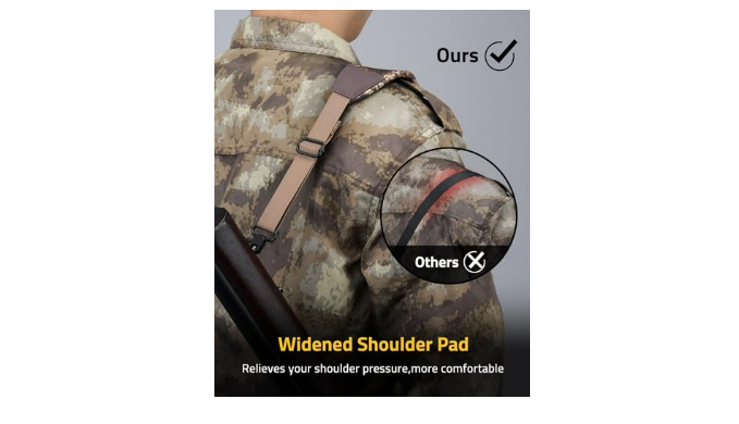 Widened Shoulder Pads: The wide shoulder pad of the gun sling can effectively relieve your pressure, soft and comfortable. The shoulder pad is designed with camouflage edging, a better appearance