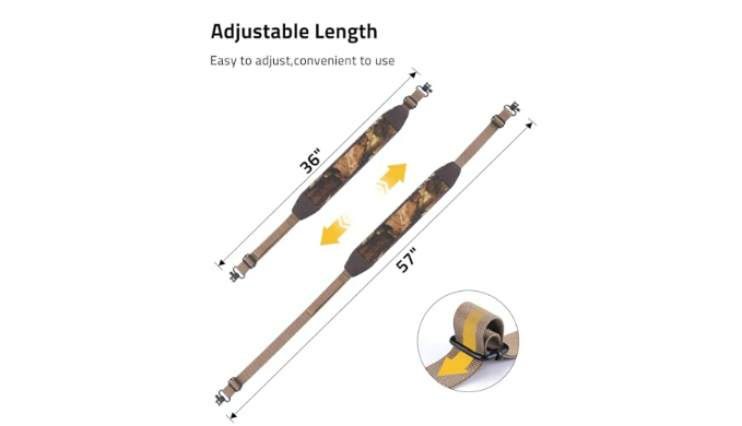Adjustable Length: The gun slings can be adjusted from 36\" to 57\" in length, suitable for most people. You can adjust the rifle sling length with two metal slide buckles, making it fit you