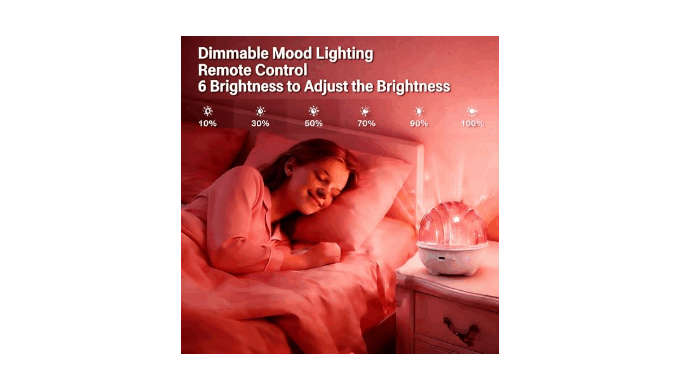 【Smart Remote & Touch Control】The Northern Lights Projector has not only touch buttons but also a remote control for long distance operation. Easily adjust colour/dimming/dynamic modes from a distance with the included remote control. Colour/dimming can also be adjusted by touch. Easy to control the light even when your hands are wet