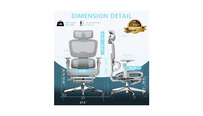 【Your All-Day Comfort Partner】The D300 ergonomic chair with Footrest featuring 6D magical armrests with 360° rotation,5-level adjustable height backrest,and a comfy-wide 3D breathable headrest. SGS and BIFMA-certified for 8-hour use,supporting up to 450LBS,ideal for work, gaming,and home relaxation.