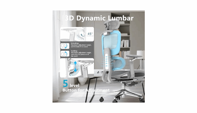 【Biomimetic 3D-Zoned Back Support】The heavy-duty office chair offers a 3D split backrest with 5-height lumbar adjustment (±1.8\") for personalized comfort.