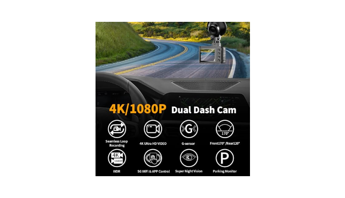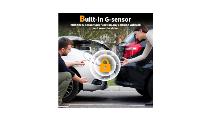Built-In G-Sensor: The 4K dash cam is equipped with a high-performance G-sensor, designed to detect collisions or abrupt events, and optimized to detect even minor impacts. When the G-sensor detects an impact, the dash cam automatically locks the relevant footage, ensuring that critical recordings are not overwritten during loop recording. This feature provides reliable protection by preserving essential video evidence in the event of an accident, making it an essential safeguard for driving.
