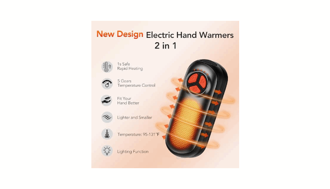 【Upgraded Electric Hand Warmers 2 in 1】: Spread warmth, bid farewell to the cold, get closer relationship. 1 set of 2 upgraded symmetrical hand warmers bring long-lasting, comfortable, and stable warmth for your family, your lovers and your friends. Two fingers wide and one finger thick user-friendly design warms your both hands comprehensively and belongs to your outdoor essential for hunting, travel, hiking, camping, skiing, skating etc.