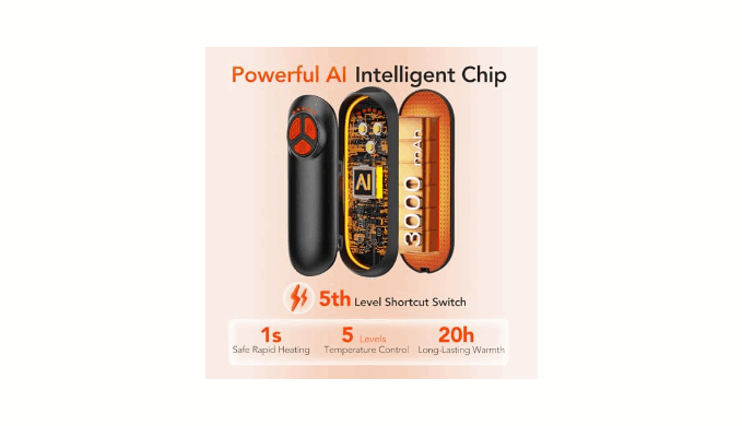 【1s Rapid Heat, Intelligent Temperature Control】: Our rechargeable hand warmers with powerful and intelligent temperature control chip, achieve 1s rapid heat and 5 gears temperature control, providing the most comfortable warmth for your hands between 95℉ and 131℉. You can see remaining battery power and heating status by 5-level indicator lights.