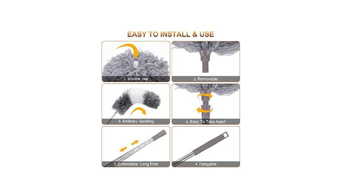 【Washable and Detachable Duster】: Washable microfiber duster is reusable. The handle and brush head of the duster are detachable. Remove the head after use and wash with warm water. Hang it at dry and ventilated place to make it fluffy for next use. The reusable duster has extremely high durability and can be used both wet and dry. The duster is not in use, it can be detached and stored without taking up too much space.