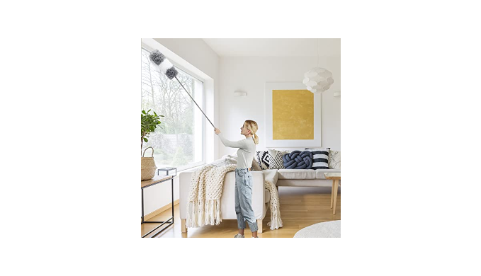 【Extendable Duster】: Duster with Extension Pole (made of stainless steel ) can be extended from 30 to 100 inches. According to the length you need, adjust the duster for high ceiling yourself, which can be easily cleaned regardless of height. Say goodbye to chairs and dangerous ladders. This extended duster perfect for cleaning ceilings and ceiling lamps. A newly designed feather duster long handle which can easily solve the height or dead corner.