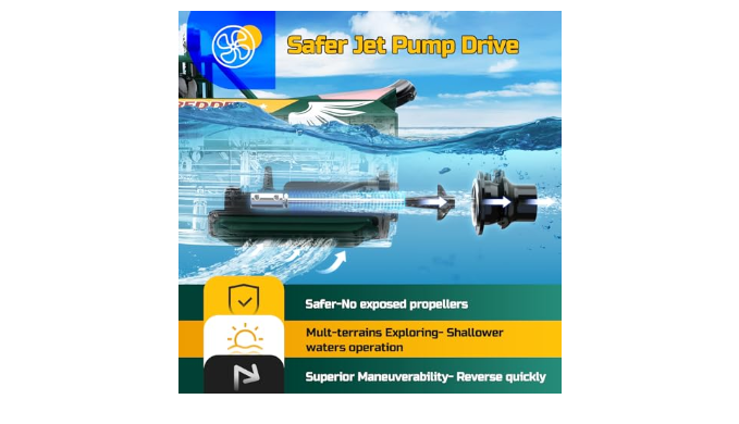 Enhanced Safety and Capacity: The jet pump propulsion system elevates this remote control boat\'s agility, facilitating sharper and more responsive turns. Its specialized design permits safe operation in shallow waters, minimizing the risk of damage. Plus, with no external moving parts, it\'s a safer choice for everyone around.