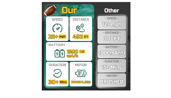 Champion Brushless Performance & Style: Tear through the water with our high-speed RC boat, powered by a robust brushless motor featuring an efficient water cooling system. With the safe Jet Pump Propulsion System, full proportional throttle, and seamless speed adjustment, you can enjoy smooth control and speeds over 25 MPH. Decked out in bold championship green and gold, inspired by America’s beloved football heroes—this RC boat is a prime pick for performance buffs and sports fans alike!