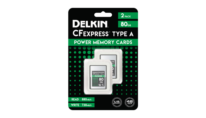 Combining industrial strength and reliability with fast performance, the 80GB POWER CFexpress Type A Memory Card (2-Pack) from Delkin Devices features a storage capacity of 80GB per card and is designed for professional photographers and videographers. It is well-suited for raw and continuous-burst photography, as well as 8K, 6K, and 4K video at high bitrates and frame rates. You’ll be able to achieve maximum read speeds of up to 880 MB/s and maximum write speeds of up to 730 MB/s.