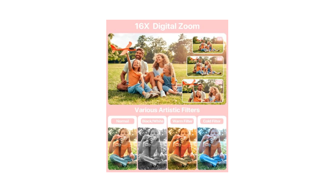 【Built-in 20 Different Types Filter】- The kids could easily choose the filter as they want, filters allow them to experiment with different visual effects, fostering their creativity and imagination while capturing photos. Applying filters adds an element of excitement and enjoyment to photography, Filters can enhance the aesthetics of photos by adjusting colors, tones.