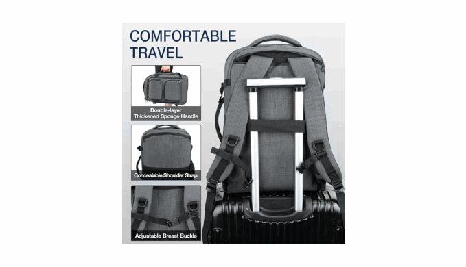 ✈Comfort and Portability: Breathable and comfortable shoulder straps and chest strap (adjustable up and down on the chest) can reduce the pressure on the shoulders; Luggage straps can secure the backpack to your suitcase/luggage for easy carrying. Thickened carrying handles on the top and sides of the suitcase backpack are suitable for long time carrying use.