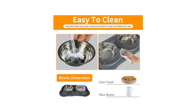 【Easy to Clean】Our two stainless steel food water bowls with mat are designed for easy cleaning. The dishwasher safe and hygienic stainless steel bowls ensure effortless cleaning. The silicone mat can be wiped clean with a damp cloth or washed in the dishwasher, saving you time and effort.