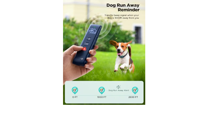Extensive 2600FT Coverage & Escape Alert: Built in escape alert, you will receive a notification (Beep 3 times) right away whenever your dog escapes 1000ft away from you, but can still control the remote in 2600FT range, being able to call your dog back