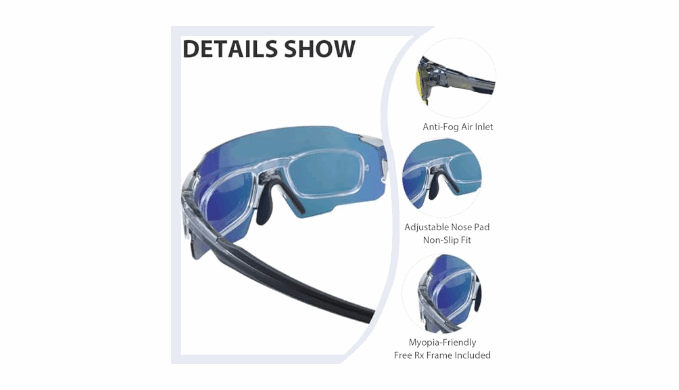 ADJUSTABLE NOSE PAD: Enjoy a secure and comfortable fit with the soft, non-slip rubber nose pads that prevent the running glasses from slipping during sweaty activities. The adjustable nose pads cater to different nose shapes and facial profiles, ensuring a snug fit for every wearer