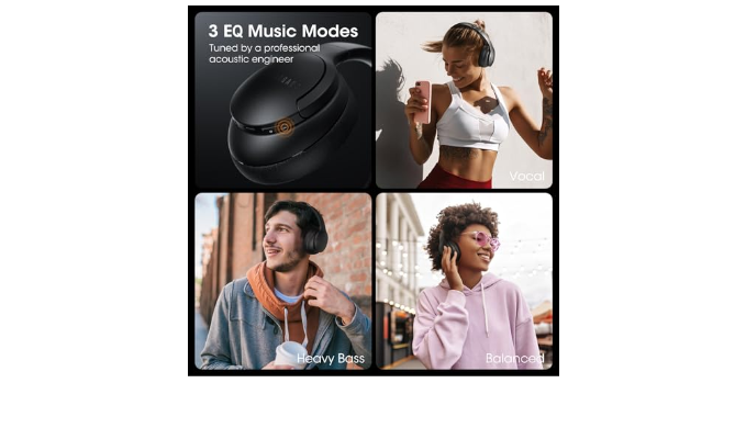 [Premium Sound Quality]: DOQAUS LIFE 4 Bluetooth Headphones over ear come equipped with two 40mm driver units and Bluetooth 5.3 technology, offer stable transmission, lower latency, and clear phone communication. ensuring stable transmission and crystal-clear audio for your gym sessions or travel adventures. The tuned by professional acoustic engineer 3 EQ modes allow you cater to different music styles, ensuring an optimal listening experience for music lovers.