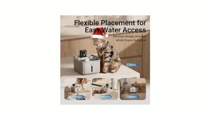 Cordless Security Design: The DownyPaws battery operated cat water fountain features an innovative cordless design, that helps avoid the risk of electric leakage, ensuring peace of mind even if pets chew on it. You can place the water fountains for cats indoor anywhere: the living room, kitchen, bathroom, on a windowsill, ect. Not only does this more freedom to stay hydrated but also keeps your home sleek, clutter-free, and stylish